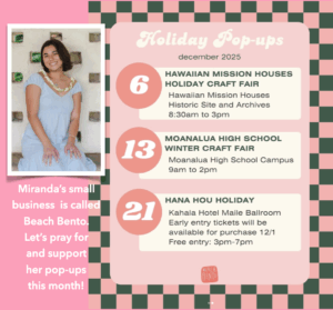 Support Miranda Chang and her upcoming holiday pop-up at Kahala Hotel Maile Ballroom for the Hana Hou Holiday.